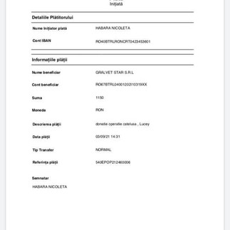 Thank you to the donors: Nicoleta Nicole who managed to collect 2150 ron. Viana Vlaicu raised the amount of 300 ron (please tag the donors yourself). Cristina Catalina donated 100 ron Irina Dusinschi donated 200 ron